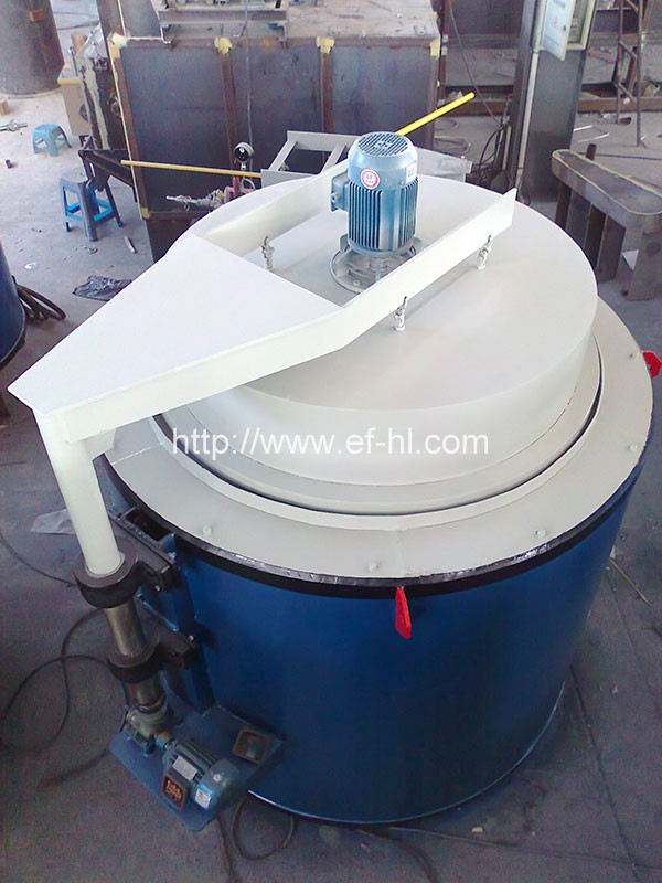 (4)炉盖:炉盖为槽钢和钢板焊接而成,炉衬为全纤维结构,炉盖的开启方式采用液压升降,与炉体的密封为沙封。