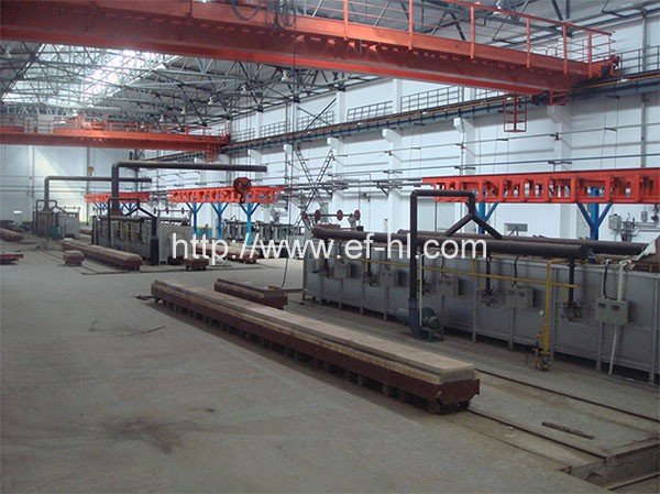 用途:用于精密铸造水玻璃和硅溶胶符合模壳的焙烧。特点:模壳焙烧炉通常由燃料供给系统、燃烧系统、推料机、炉体、山料接应推车等几部分组成,该产品有燃油和燃气二大类供用户任意选择。它生产成本低,结构紧凑等优点。结构:1、炉壳为全钢结构,美观坚固。2、炉衬由隔热保温材料及耐火制品组成复合炉衬。3、燃烧器采用燃烧稳定、可靠、节能性然烧器。4、料框和滑道采用耐热钢制造,坚固耐用。5、装出料为端进端出,小车接应。