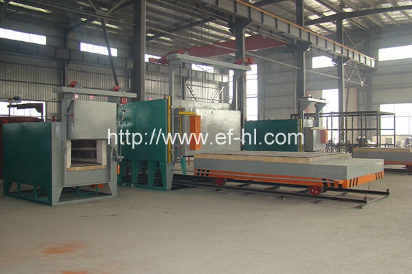 本系列电炉外壳有钢板和型钢焊接而成,台车由型钢及钢板焊接,台车通过与炉衬的软接触和沙封机构来减少热辐射及对流损失,有效保证炉体密封性。