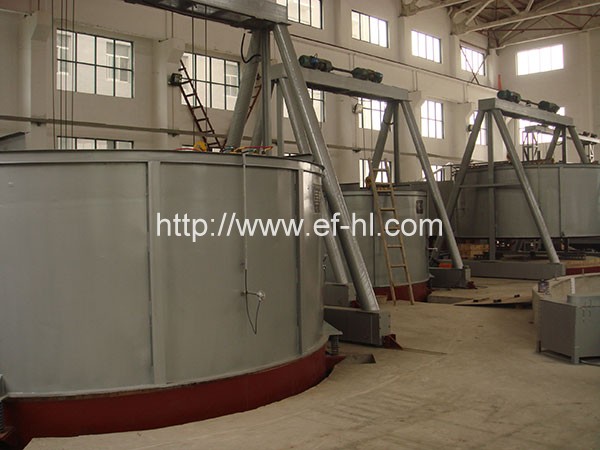 罩式炉由一个加热罩,两个炉座和阀架等组成。炉衬采用纤维硅酸铝针刺毡折叠块组合而成,这样大大减轻了罩身的重量,不仅提高了保温效果而且降低了能耗。加热元件采用电阻带均匀的悬挂在炉膛四周,并用陶瓷螺钉加以固定,坚固又耐用。炉座成圆形状,采用耐火材料砌筑,并留有沙封槽,以便达到密封的效果,电控柜采用PID过零出发温控调节仪来调节炉内的功率和温度,并安装有超温报警功能。和根据客户需要制作上拉机,组态软件动态显示。